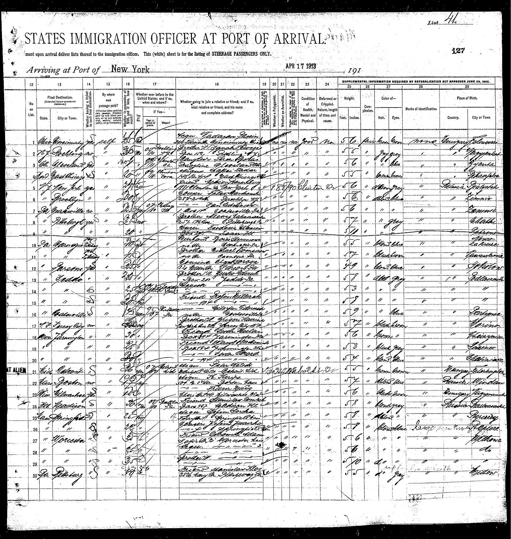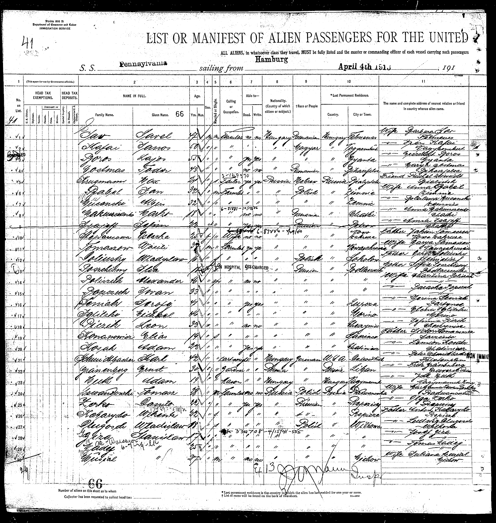 - My great-great grandfather (Kaffay Ianos) took the trip on the S.S. Pennsylvania sailing from "Hamburg on the 4th April 1913" arriving at the "Port of New York on the 14th of April 1913".