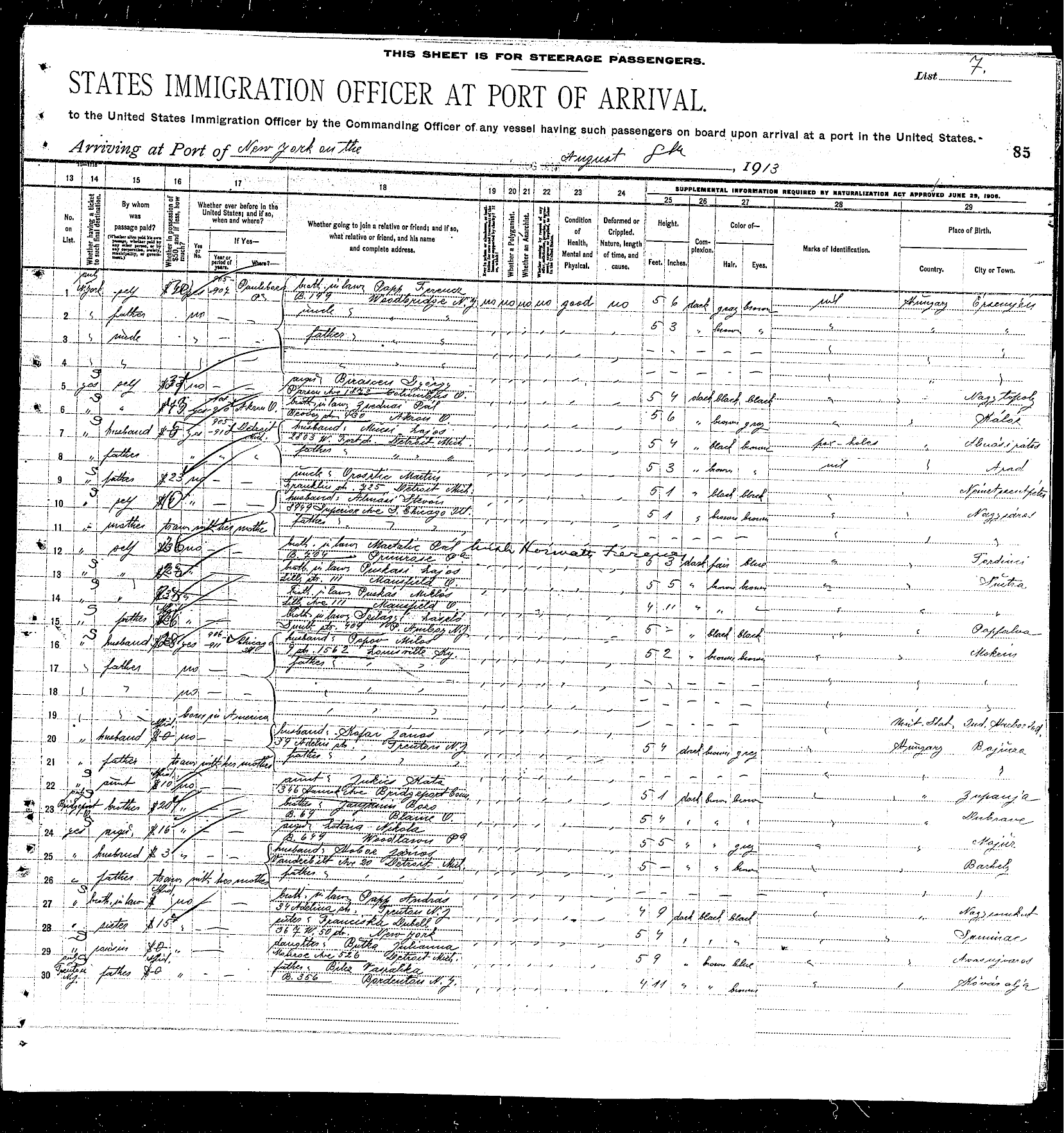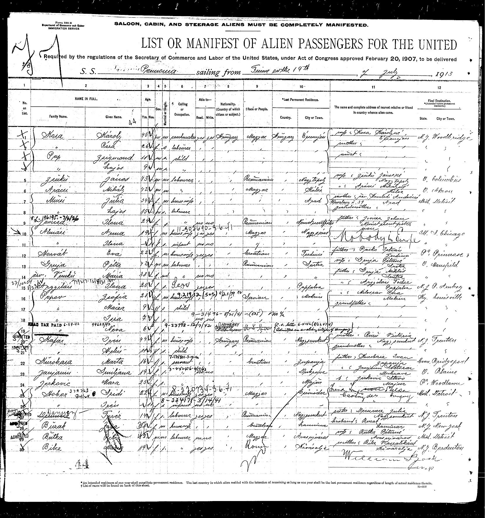 - and my great-great grandmother (Kaffay Irene) together with their daughter - my great grandmother (Kaffay Helen) arrived on the S.S. Pannonia Sailing from "Fiume on the 19th of July 1913" arriving at the port of "New York on the 8th of August 1913".