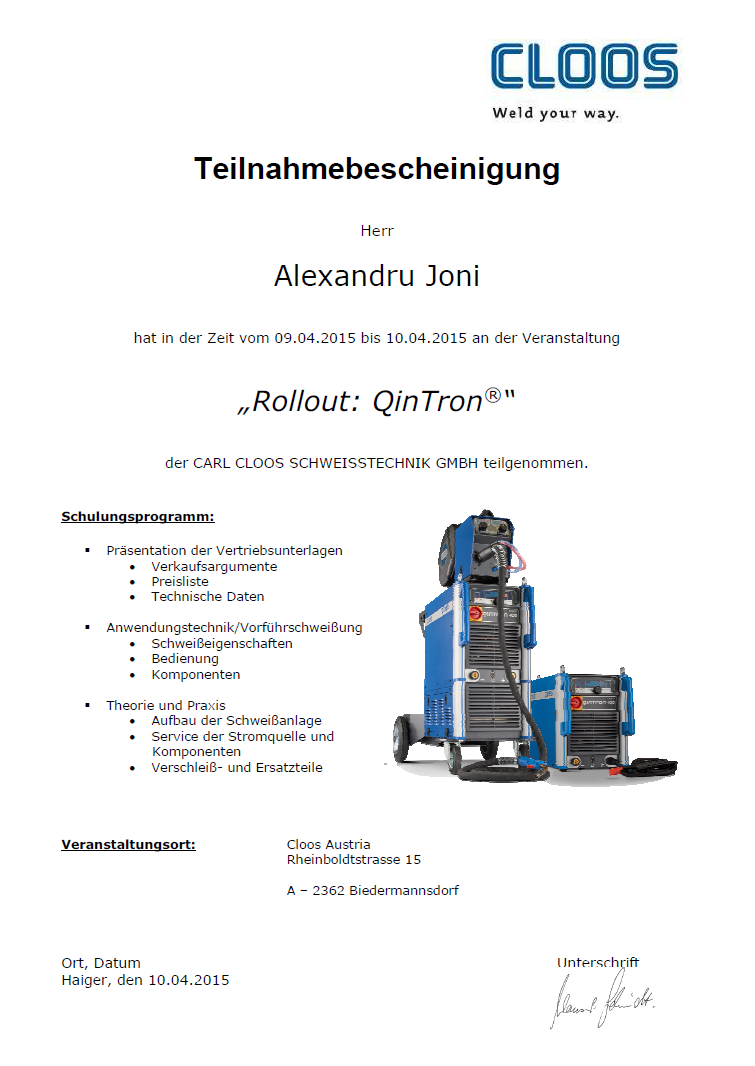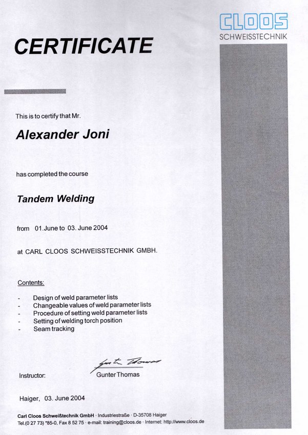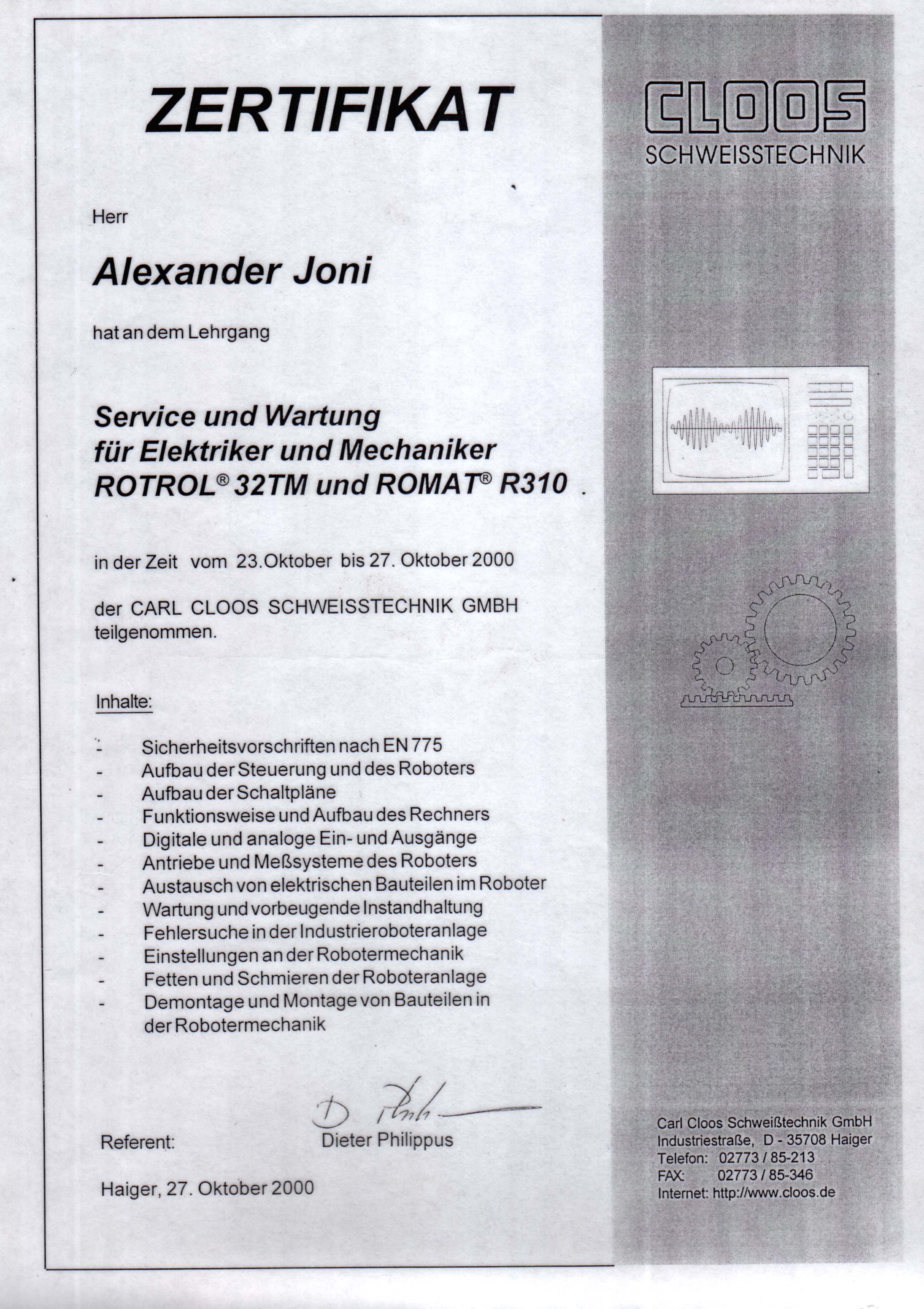 | 2008-present: | Head of the robotics division at Robcon - providing welding robot systems. |