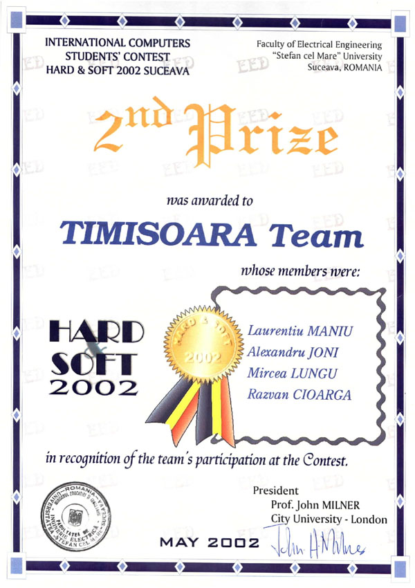 | 1998-2003: | Student at the Computer and Automatics Faculty, POLITEHNICA University of Timisoara |
