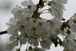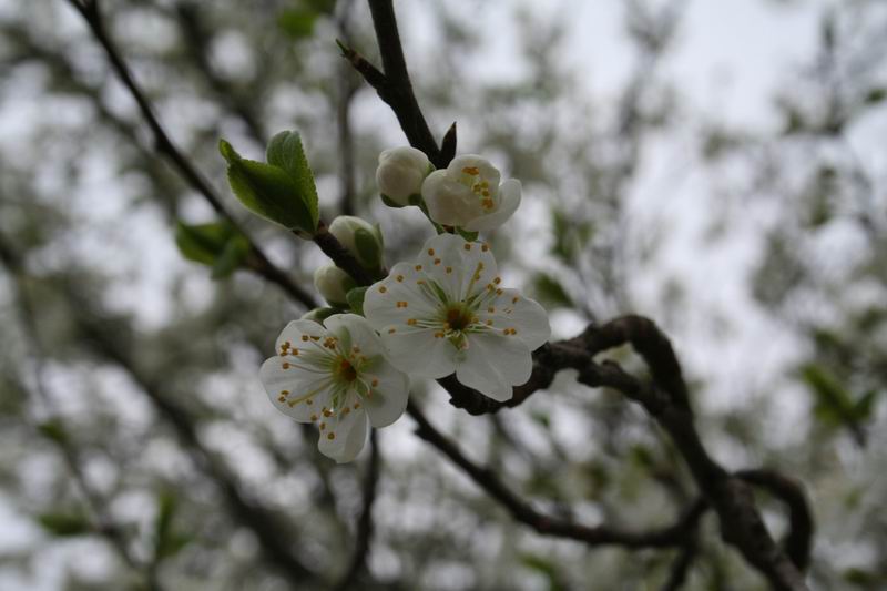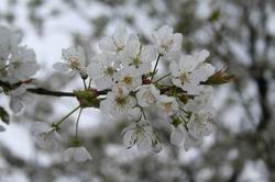cherry tree rose bush more cherry tree tulip and some more cherry tree more flowers another tree and a dog ;)