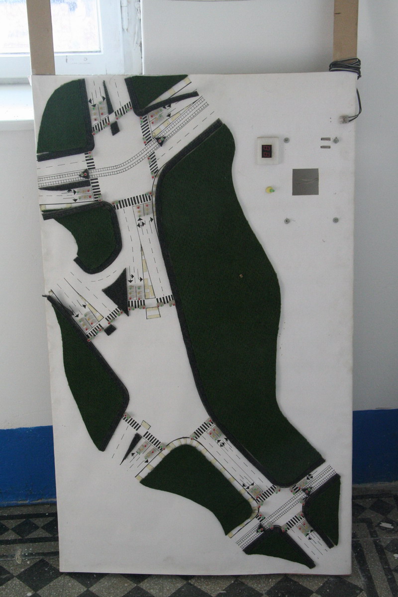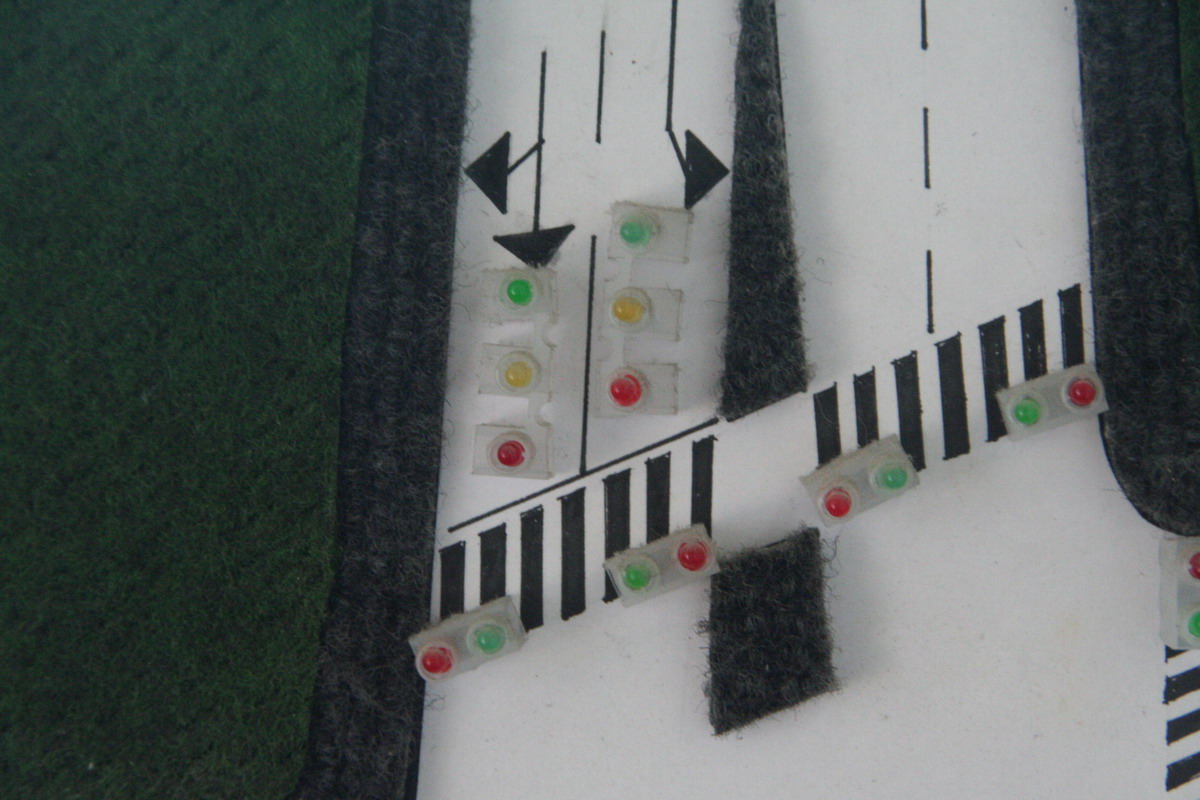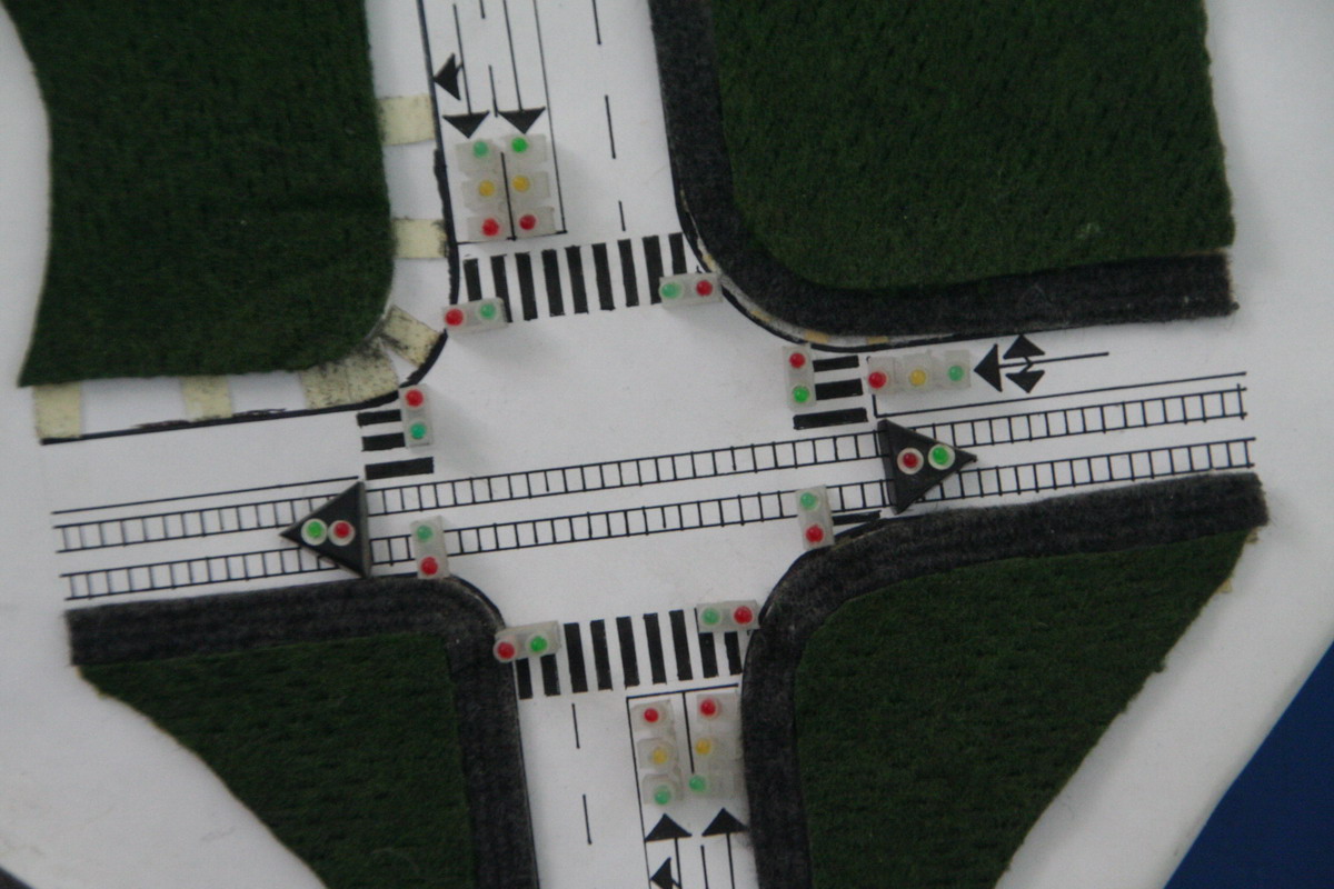 To make it even more interesting, we also built a model (see attached pics) that prove the functionality (3 intersections, built with my first micro: Motorola HC12 using this kit).