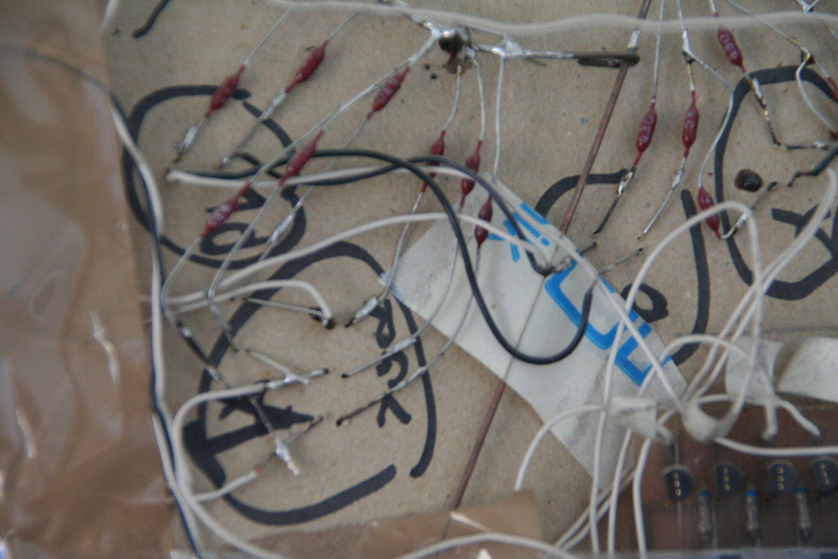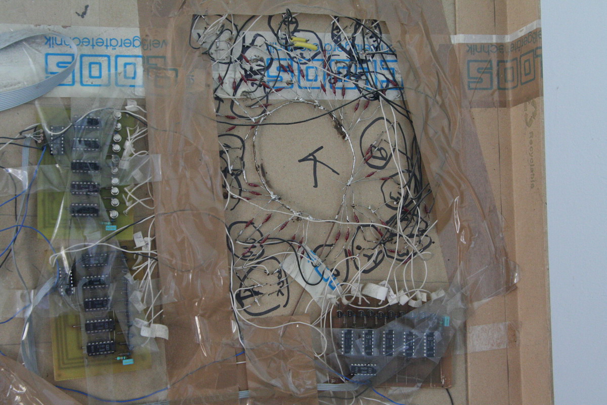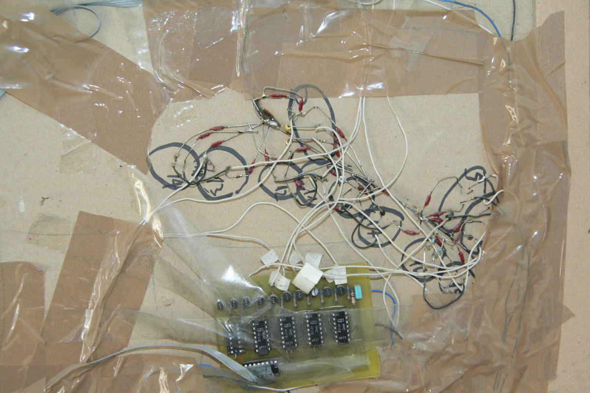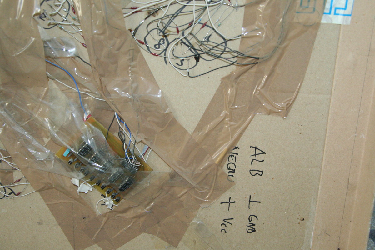 Be gentle on the backside "hackiness" ;) It was one of the first real projects we did (the first micro controller based project ever..). We had to drive about 135 LED's, so we built some demux boards (T-style flip-flop and BCD decoder) to increase the number of available outputs. Also note the model is in a pretty bad shape (after about 8 years of storage..)